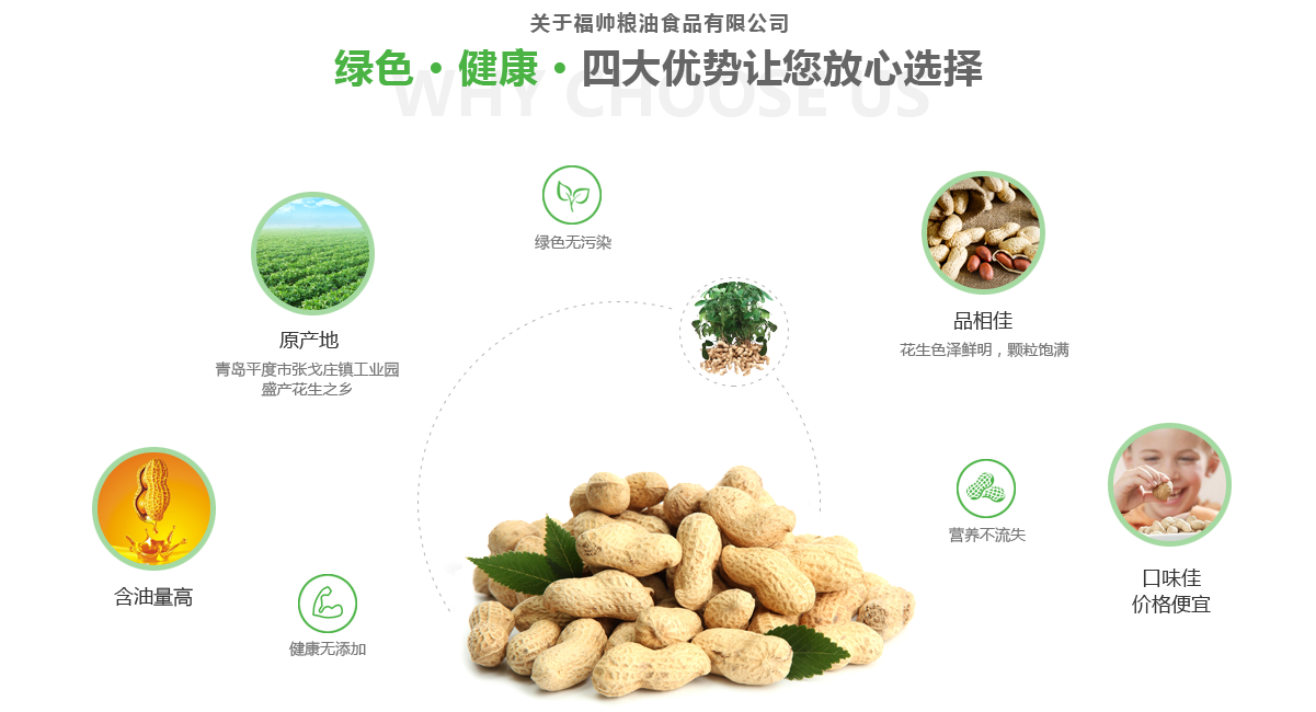 青島福帥糧油食品有限公司成立于2003年5月,位于山東大花生之鄉—青島平度市。青島平度市位于膠東半島西部,是山東省面積******的縣級市,是連接青島、濰坊、煙臺三大城市的“樞紐”,被譽為青島的“后花園”。國家地理標志保護產品--“平度大花生”,以色澤鮮明、顆粒飽滿、香甜可口、含油量高而聞名于世,是綠色健康食品。青島平度市先后創造了萬畝花生單產超千斤的全國高產紀錄,連續6年全國總產量排名縣級市第一,獲得“中國花生之鄉”的稱號,是全國的花生綠色生產基地,并擁有全國******的花生交易市場... [查看更多]